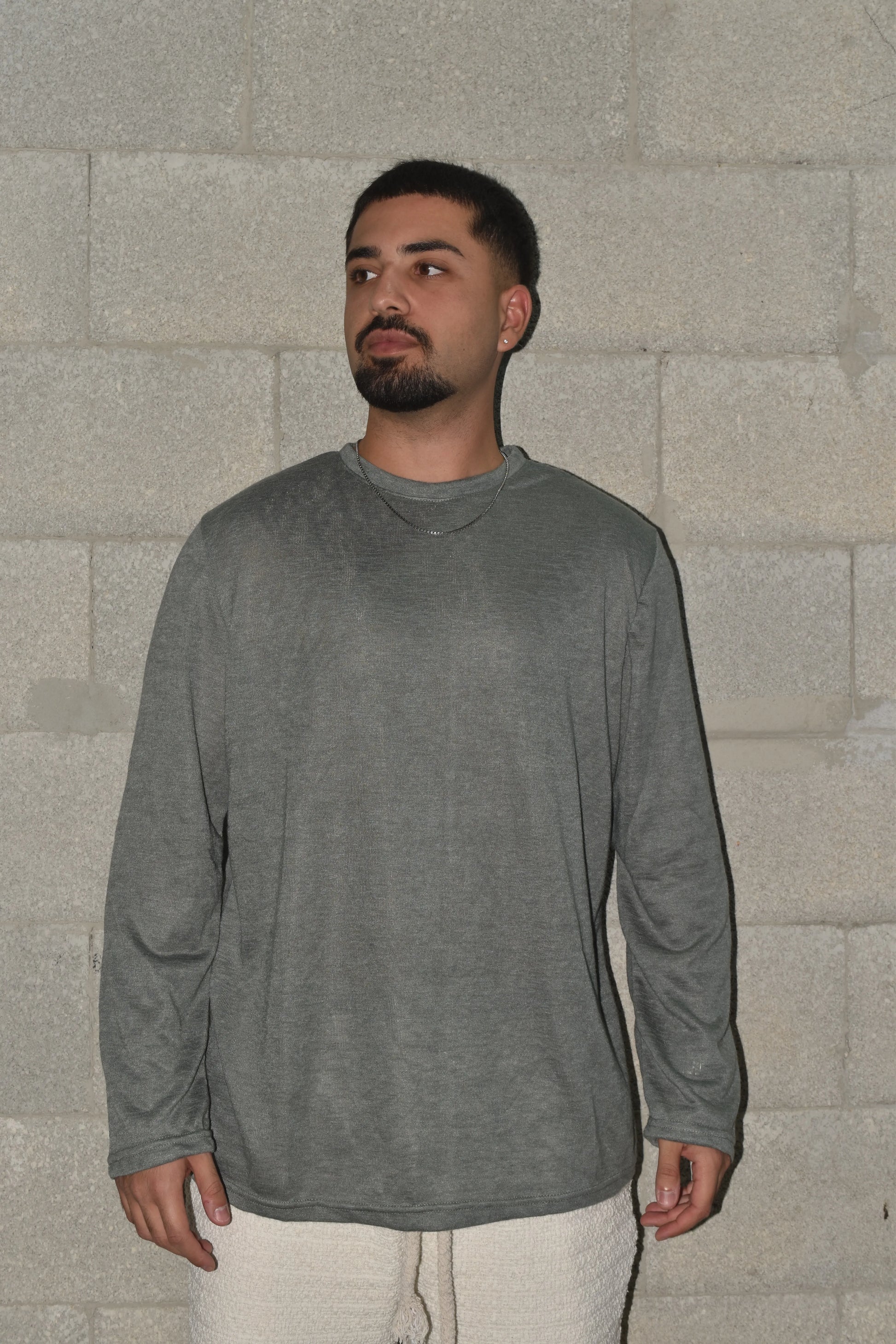 חולצה בצבע בז ארוכה מבד פשתן רכה ונעימה חובה בכל ארון