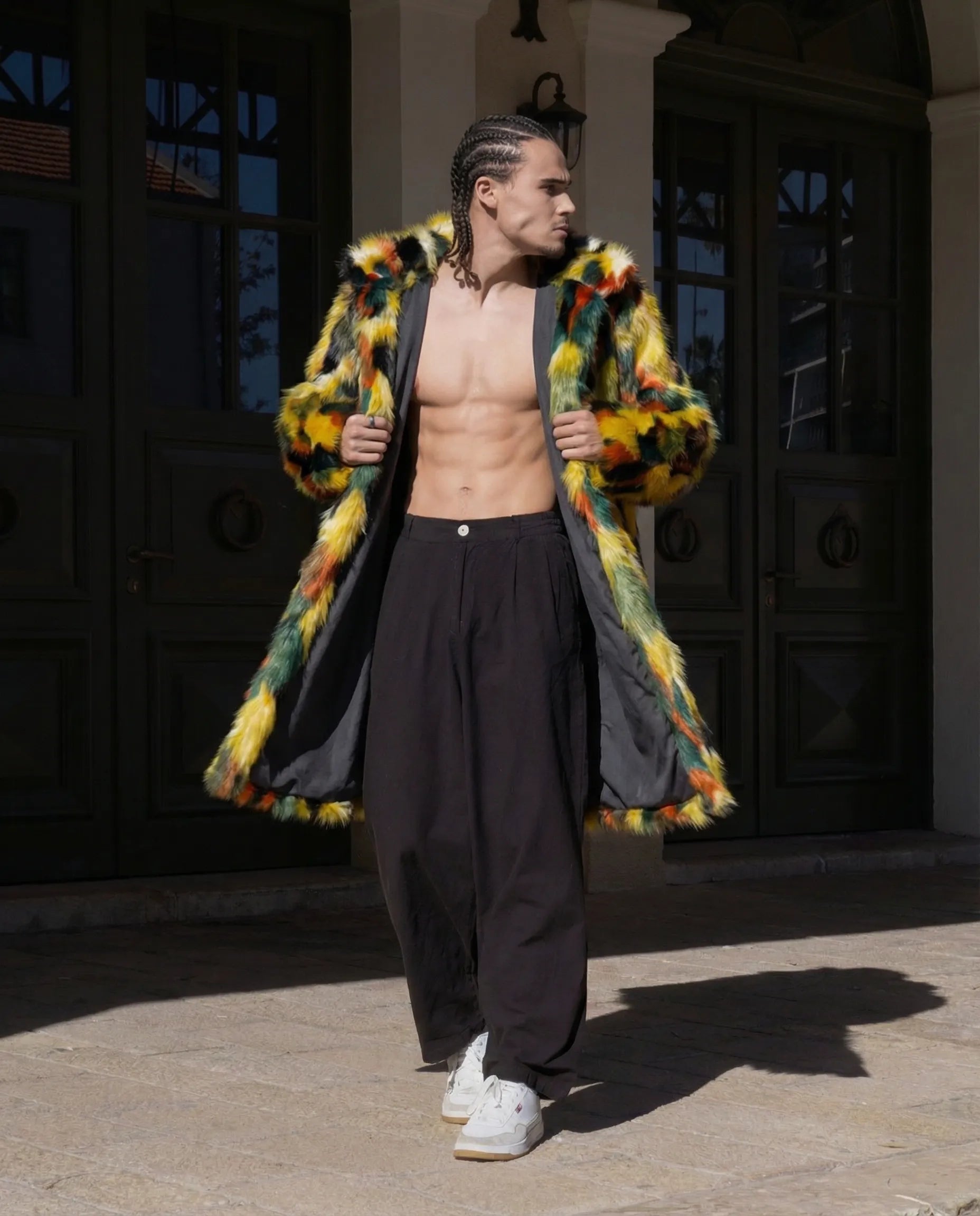 מעיל פרווה צבעוני מתאים למסיבות, פסטיבלים, פורים ולמי שאוהב להתקרחן
