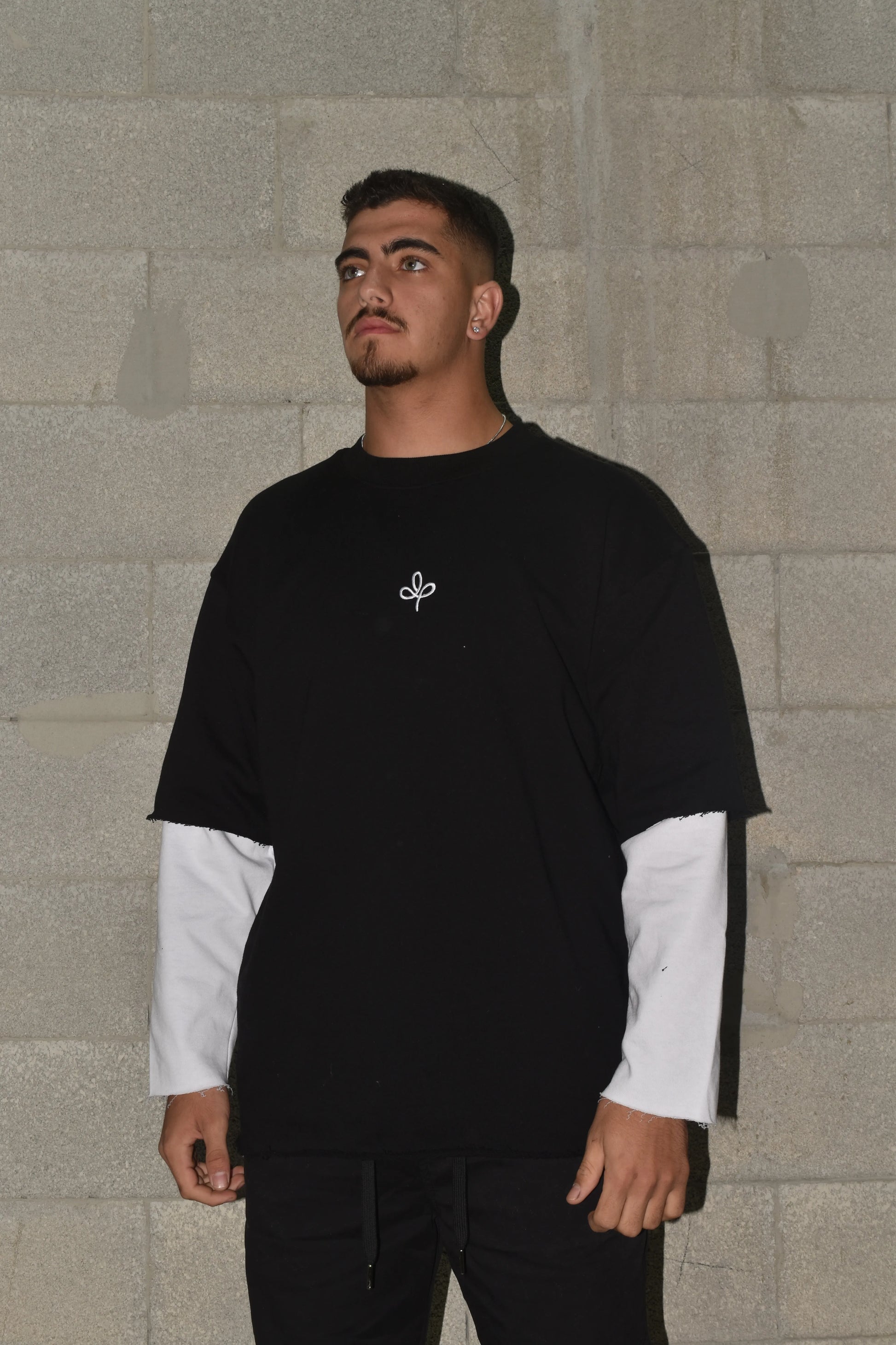 חולצה שחורה בד כפול, גזרת אוברסייז מראה אורבני. עשויה מבד כותנה נעים ואיכותי, מתאימה לשילוב עם ג׳ינס, מכנסיים קצרים או לוק שכבות.