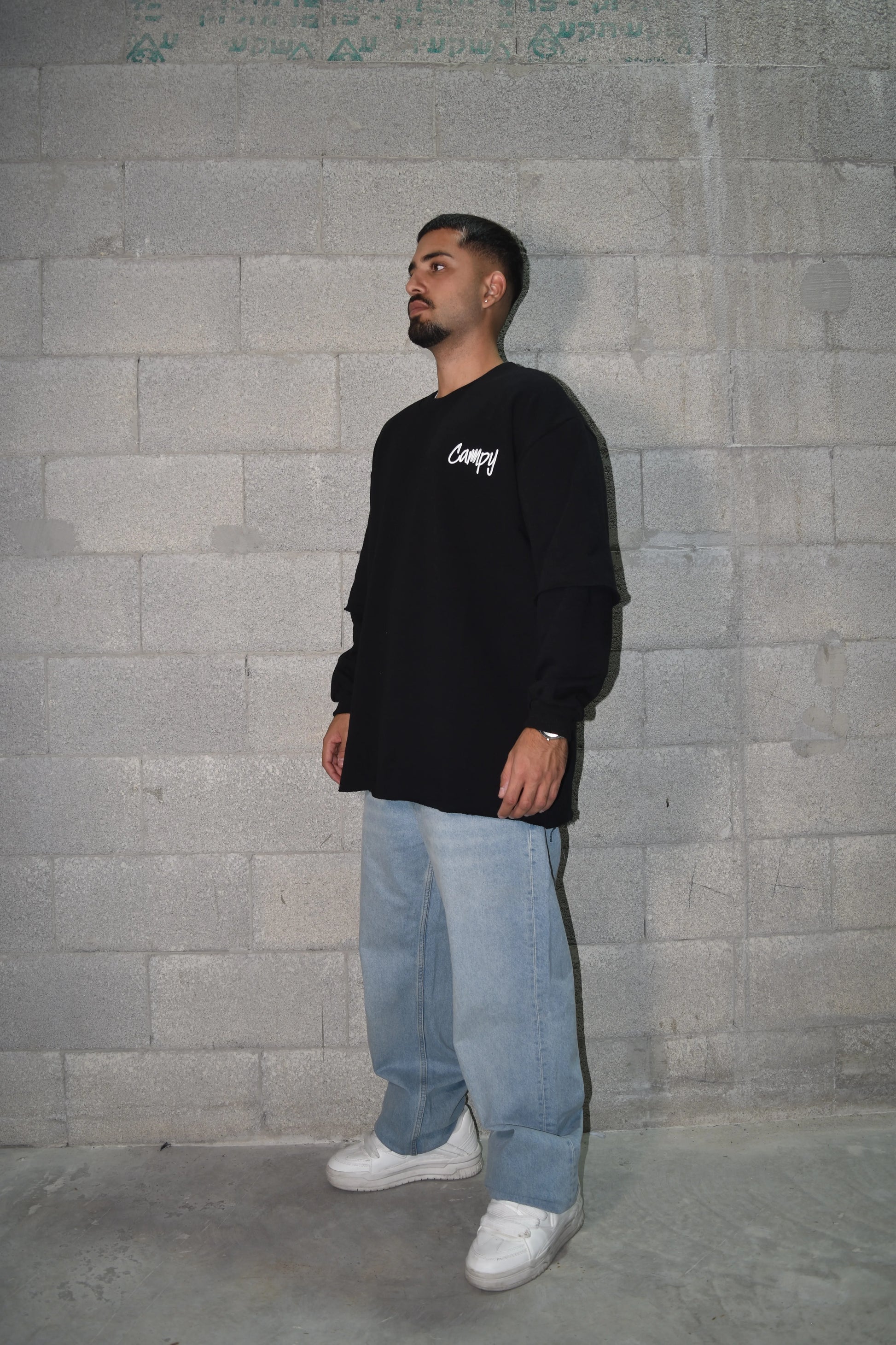 חולצה אוברסייז שרוול כפול אוברסייז מיוחדת משתלבת עם הכל