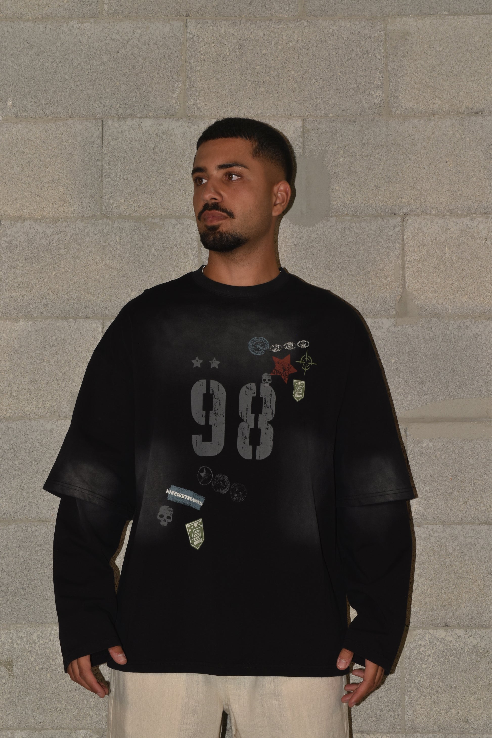 חולצה בד כפול, גזרת אוברסייז מראה אורבני. עשויה מבד כותנה נעים ואיכותי, מתאימה לשילוב עם ג׳ינס, מכנסיים קצרים או לוק שכבות.
