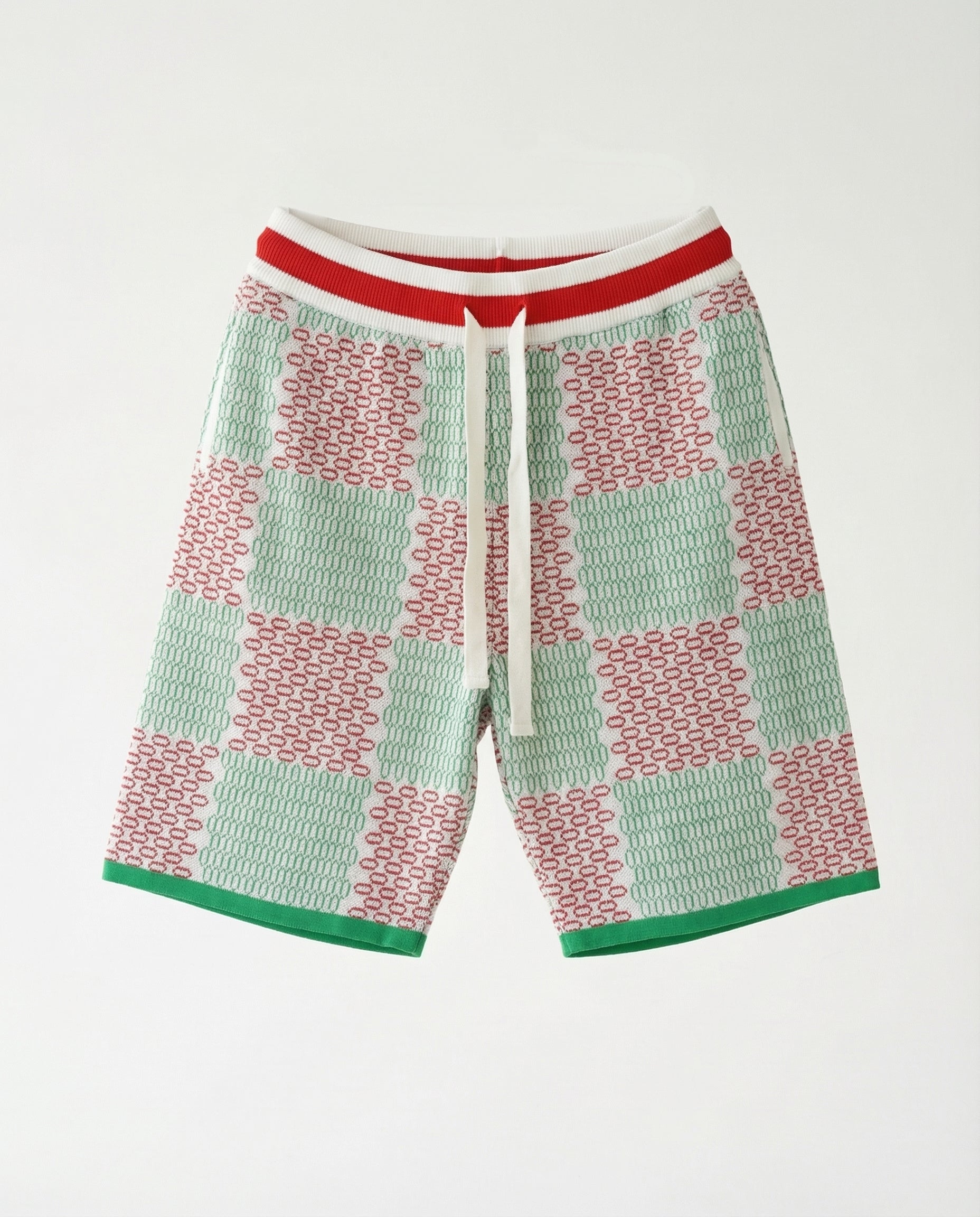 שורט סרוג בגווני חום-שוקו עם נגיעות ורודות בהדפס שבטי גאומטרי. בד נעים, גזרה נוחה עם גומי ושרוך במותן, מושלם למראה קז'ואל עם טוויסט אתני.