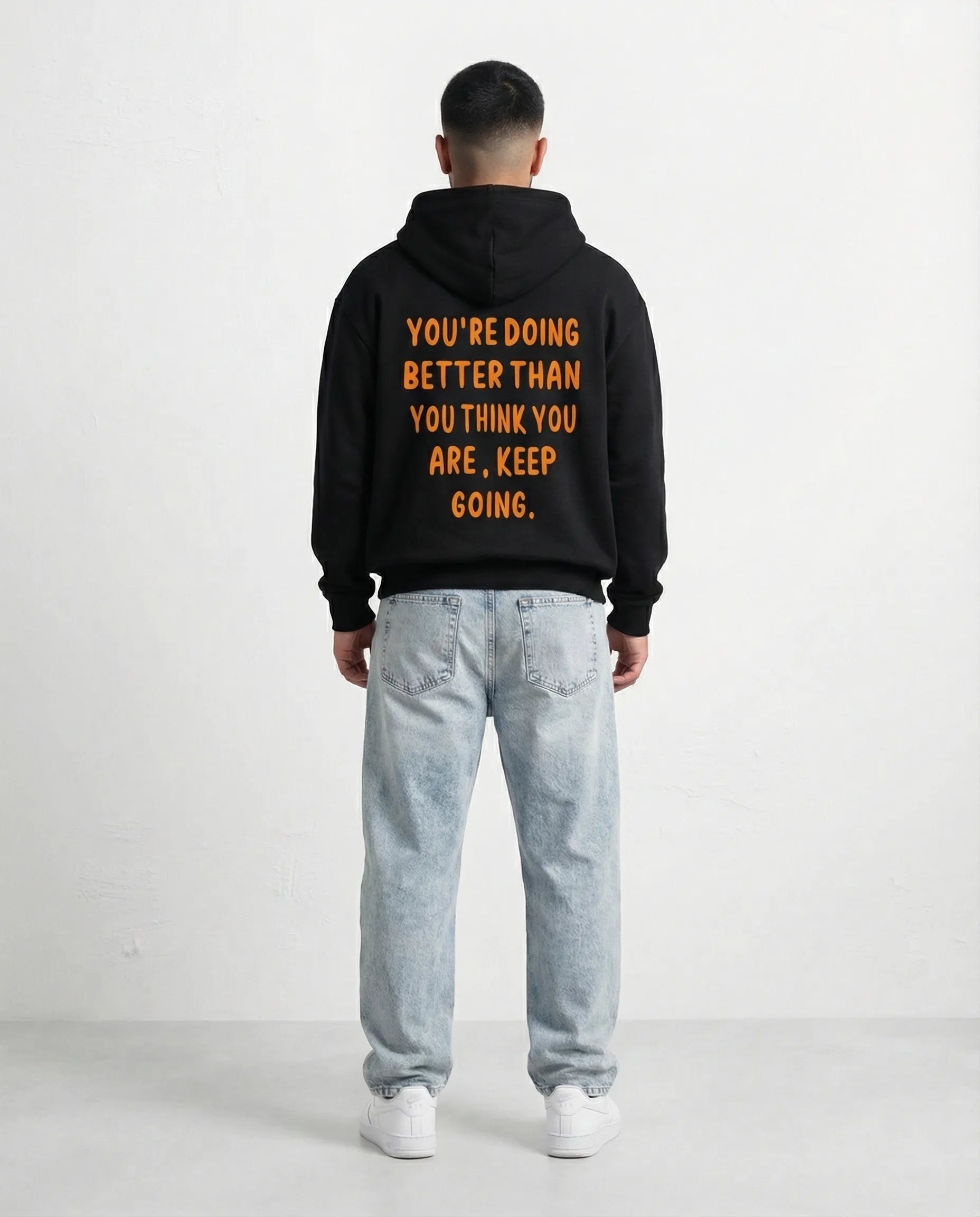סווטשירט אוברסייז שחור עם כיתוב ריקמה בגב